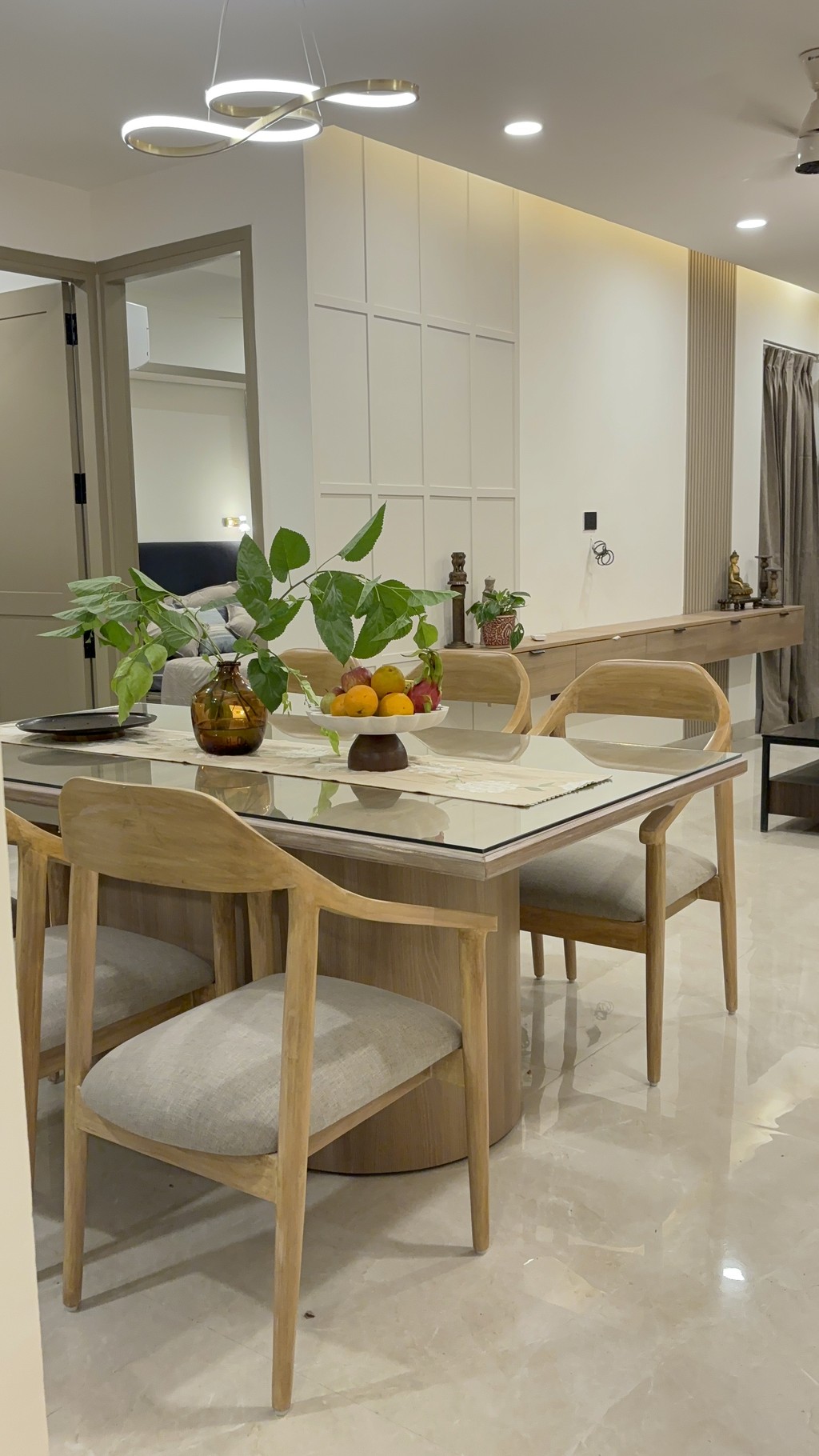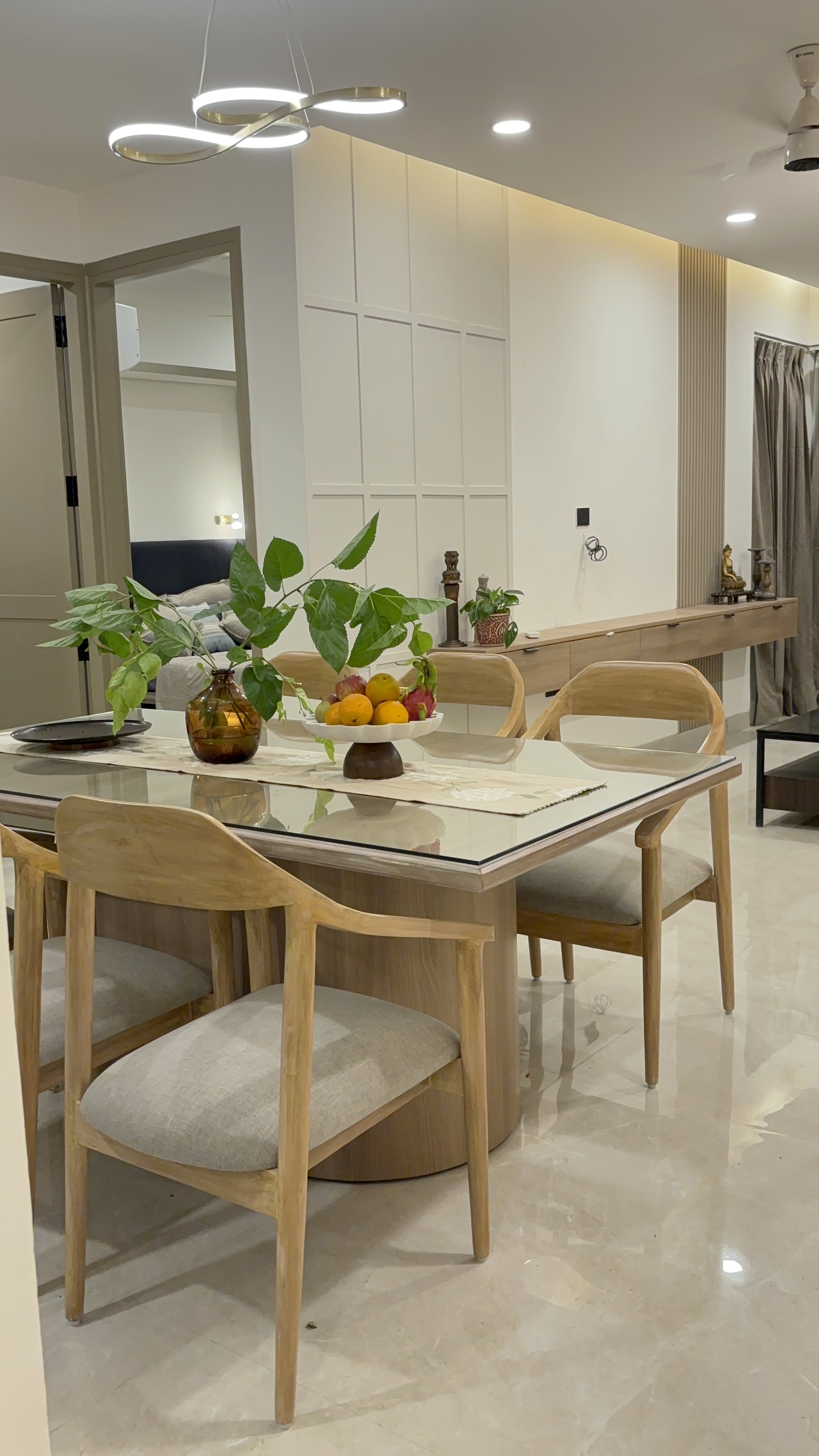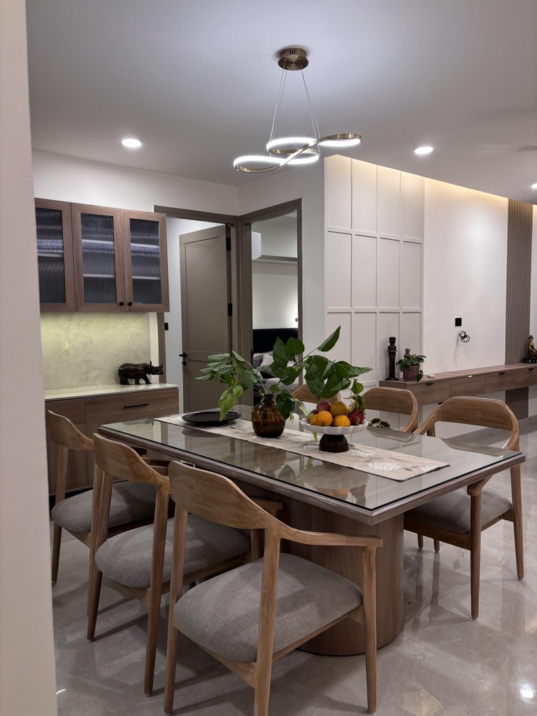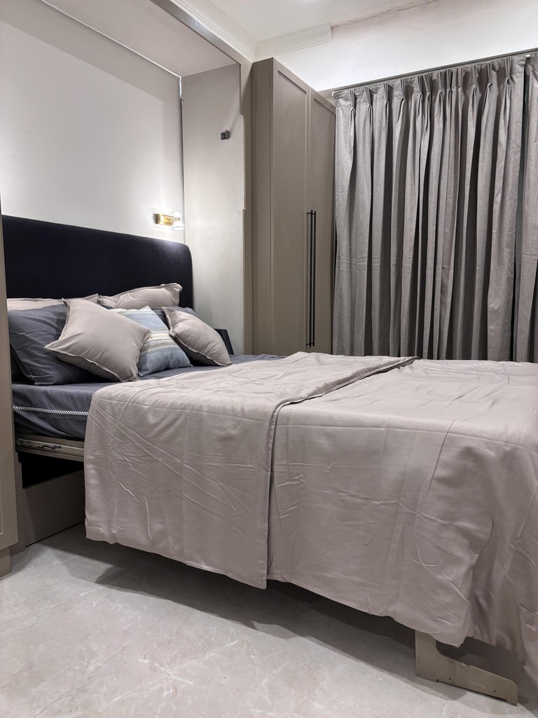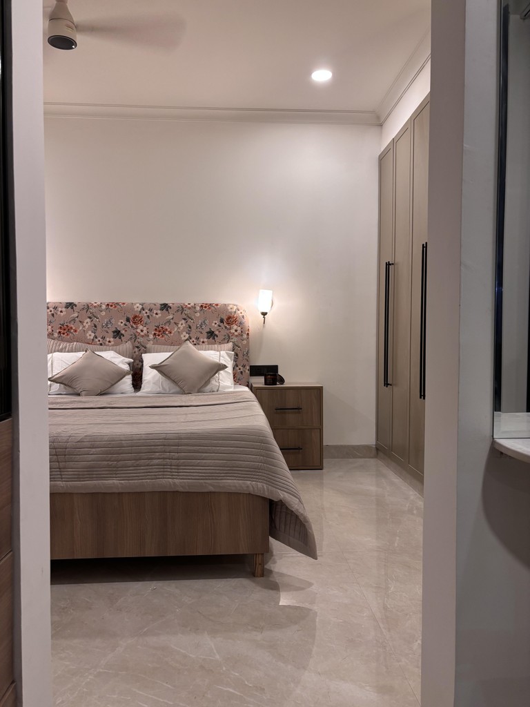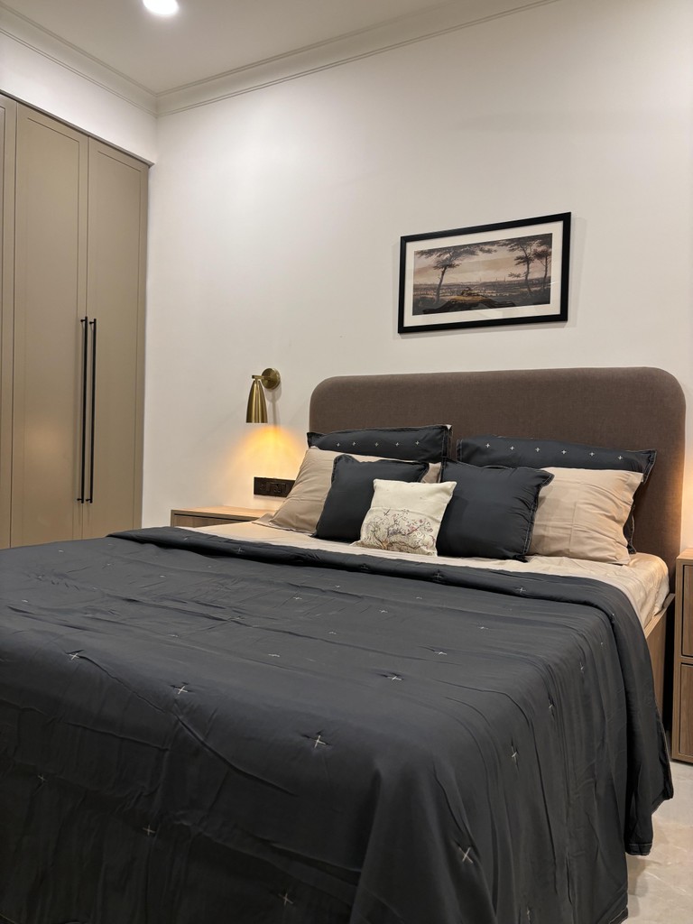 Welcome to "Serene Sanctuary," where modern design meets subtle Indian touches. This tranquil space features clean lines and a soothing color palette, creating an inviting atmosphere. Handcrafted textiles and traditional motifs add warmth and cultural richness. Every detail enhances style and comfort, making this the perfect retreat from the outside world. Experience a harmonious blend of contemporary elegance and timeless heritage in this serene haven.